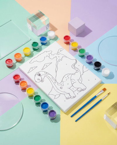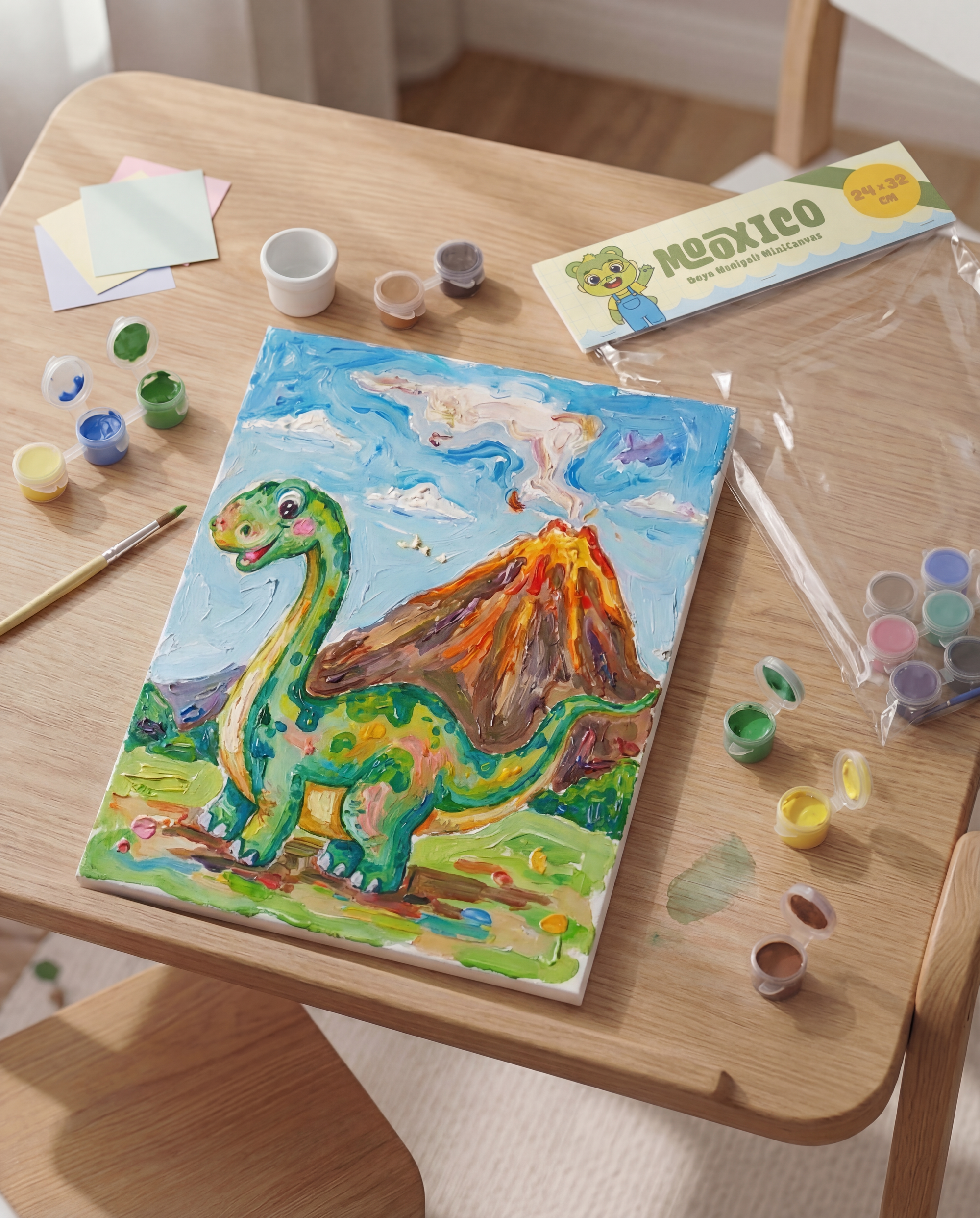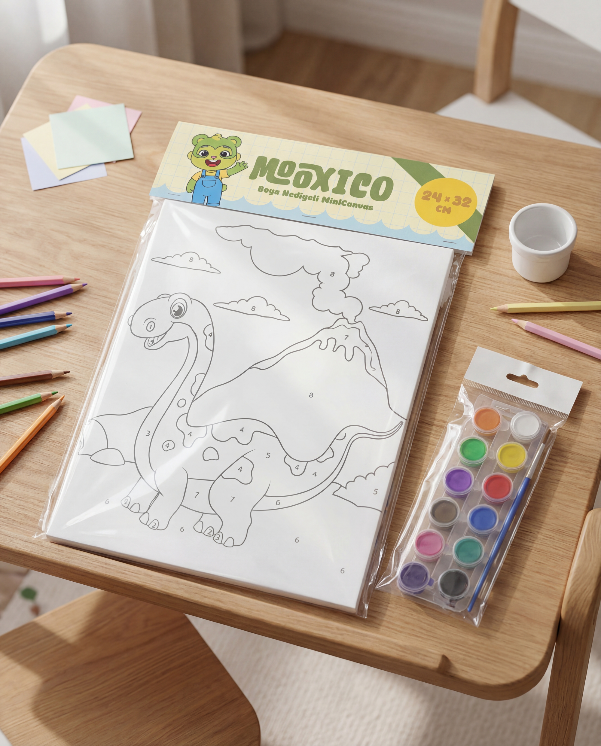 Mooxico MiniCanvas Boyama Seti – Dinozor (24×32 cm, Numaralı Boyama + 12’li Boya)