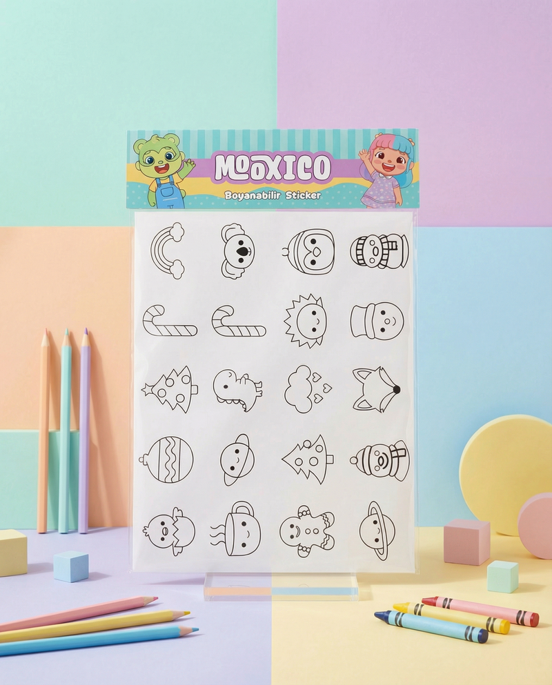 Mooxico Boyanabilir Sticker Sayfası – Çizilebilir Sheet (Çoklu Desen)