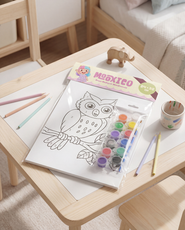 Mooxico MiniCanvas Boyama Seti – Baykuş (24×32 cm, Numaralı Boyama + 12’li Boya)